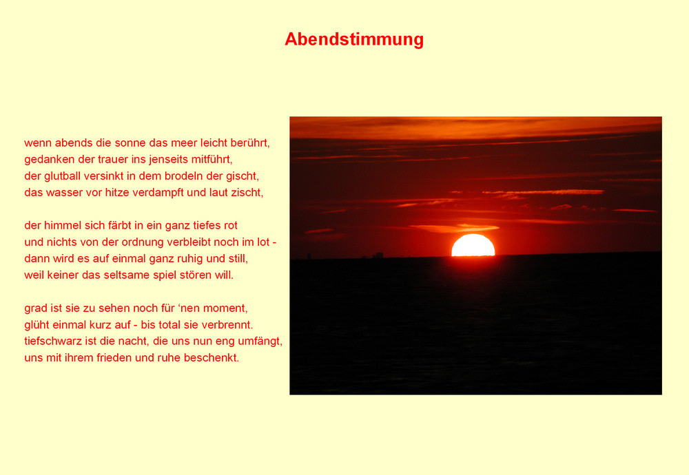 home Poesie Feste Seelenfrieden Seelenträume Seelenfarben Seelenfreunde Seelennot Neue Gedichte Gedanken Gästebuch